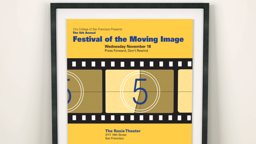 Full ProjectThis is a poster for the Festival of The Moving image, a short movie festival organized by the City College of San Francisco Cinema department.